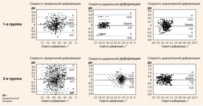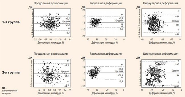 Следует отметить, что на сегодняшний день отсутствуют стандартизированные релевантные значения показателей деформации миокарда, имеющие четко определенные границы [1, 5].