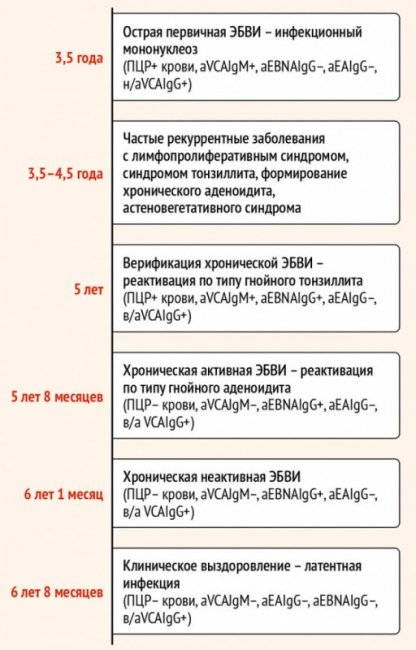 Рисунок. Этапы формирования у пациентки хронической Эпштейна – Барр вирусной инфекции