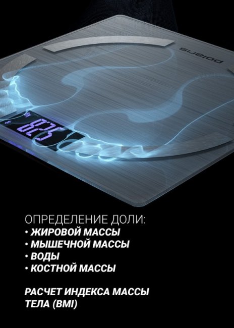 Например, весы Polaris PWS 1886 IQ Home помогут следить не только за весом, но и за общим состоянием организма. Они получают данные по 6 параметрам: вес, процентное содержание костной, мышечной, жировой массы, доля воды и расчёт индекса массы тела BMI (ИМТ).