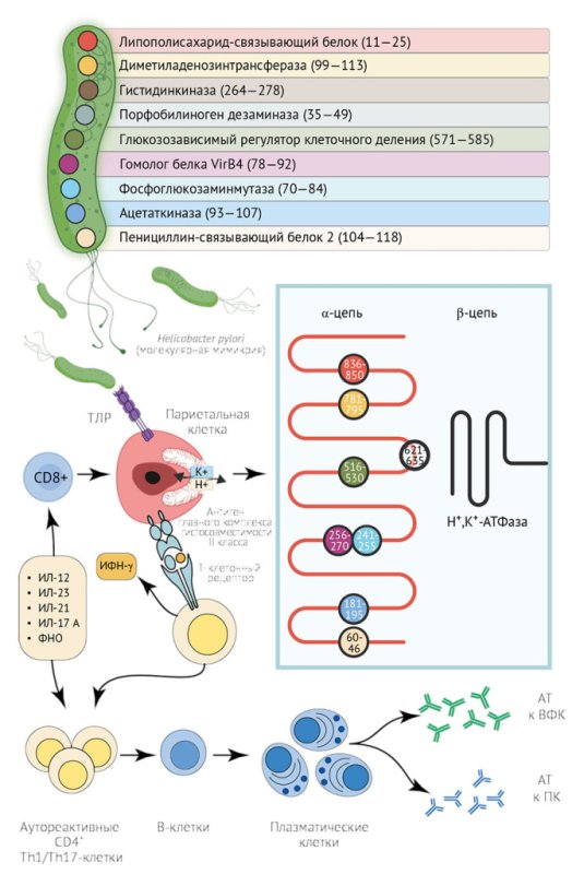 For citation: Mozgovoi SI, Gaus OV, Livzan MA, Bordin DS, Rubtsov VA, Rylskaia IA. Autoimmune gastritis and Helicobacter pylori infection: Molecular mechanisms of relationship. Meditsinskiy sovet = Medical Council. 2025;(15):16-26. (In Russ.) https://doi.org/10.21518/ms2025-399