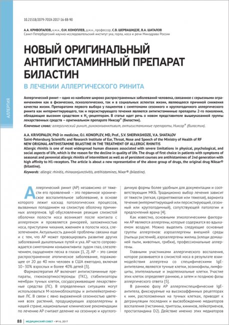 Ключ. слова: аллергический ринит, риноконъюнктивит, антигистаминные препараты, биластин