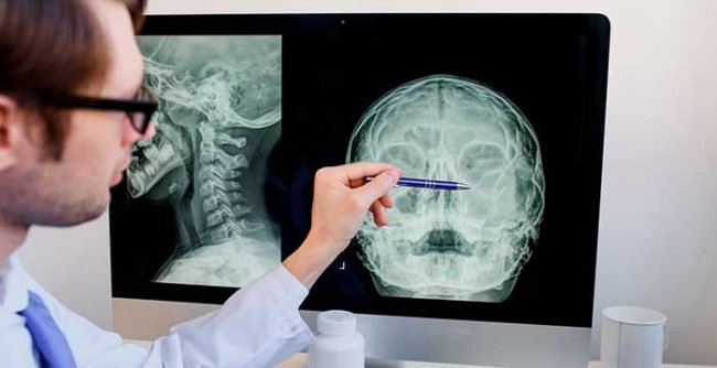 Визуализационные исследования. Ринография — это процедура, которая включает введение рентгеноконтрастного красителя в носовую полость, как показано на изображении ниже.