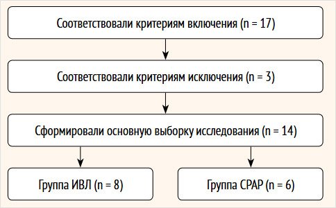 Материалы и методы. Исследование проведено на базе ГБУЗ СО «Екатеринбургский клинический перинатальный центр» в период с 27.01.2024 г. по 27.01.2025 г. Включено 14 детей со сроком гестации < 30 нед., которые к 8–14-м сут. жизни получали респираторную терапию методами назального СРАР или ИВЛ.