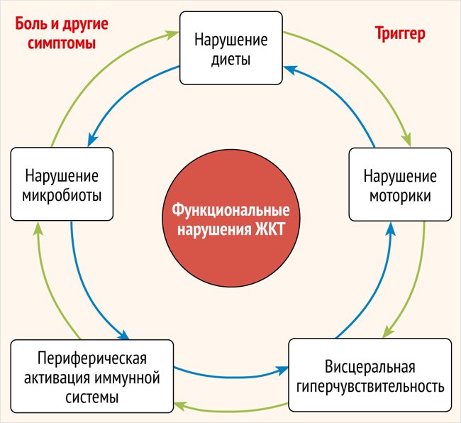 Рисунок. Этиопатогенетические взаимосвязи при функциональных нарушениях желудочно-кишечного тракта (в соответствии с Римскими критериями IV)