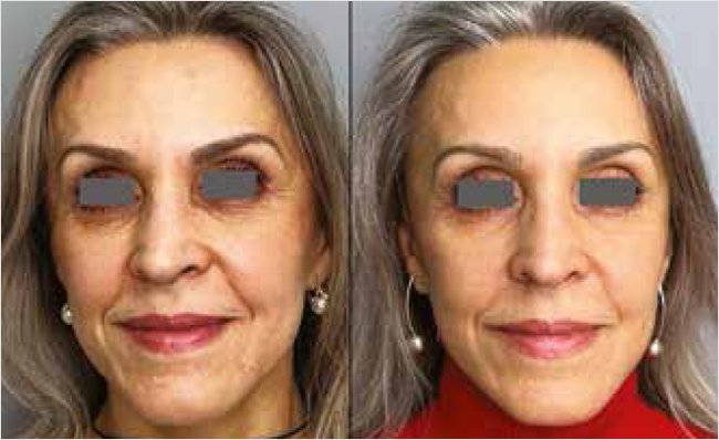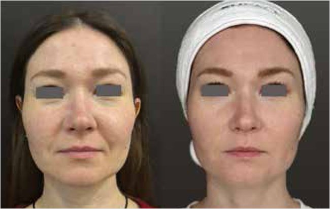 Рисунок 3. Оценка эффективности комбинированной терапии микроигольчатым RF-лифтингом (Exion) и эпигенетической сывороткой с эпицеллином до и через 8 нед. терапии