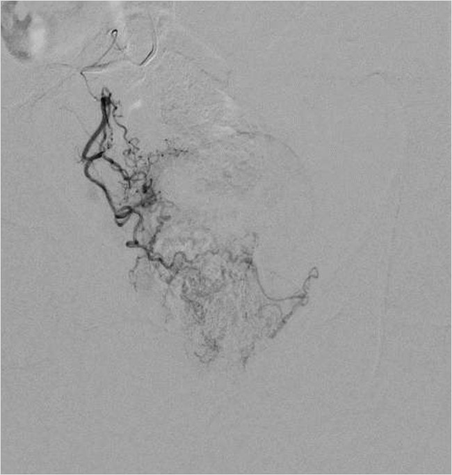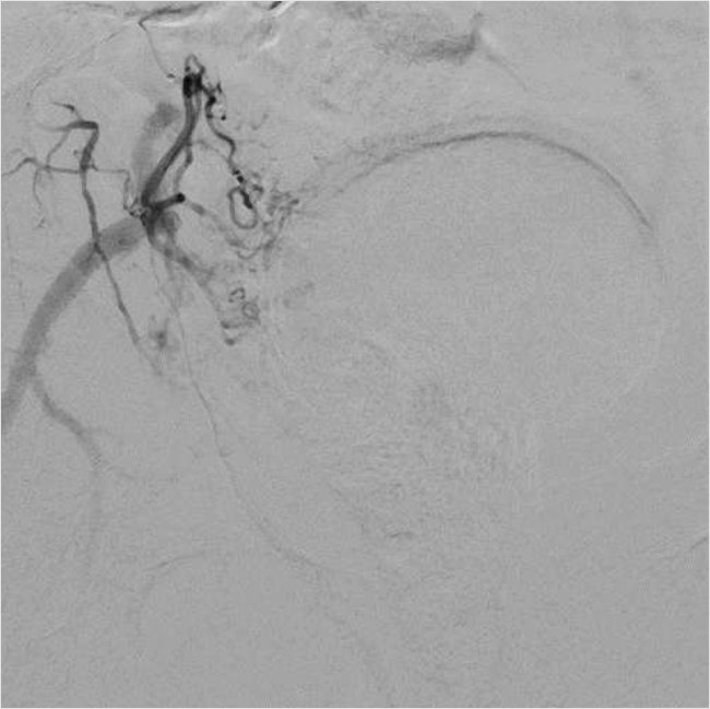 Рисунок 5. Ангиография простатической артерии справа после эмболизации