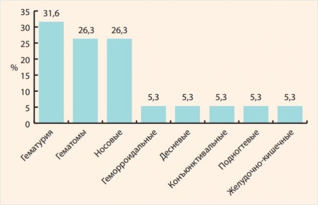 Рисунок. Структура локализации кровотечений у пациентов ≥75 лет, принимавших ПОАК (%)