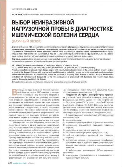 Selection of non-invasive load procedure in diagnosis of ischemic heart disease (review)