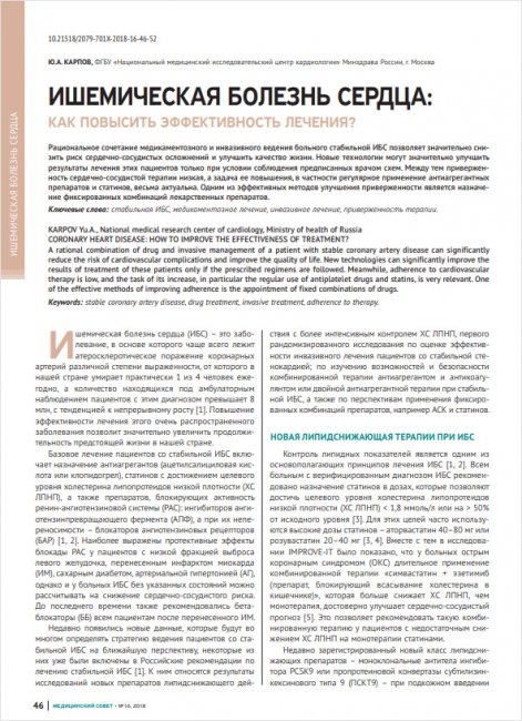 Coronary heart disease: how to improve the effectiveness of treatment?