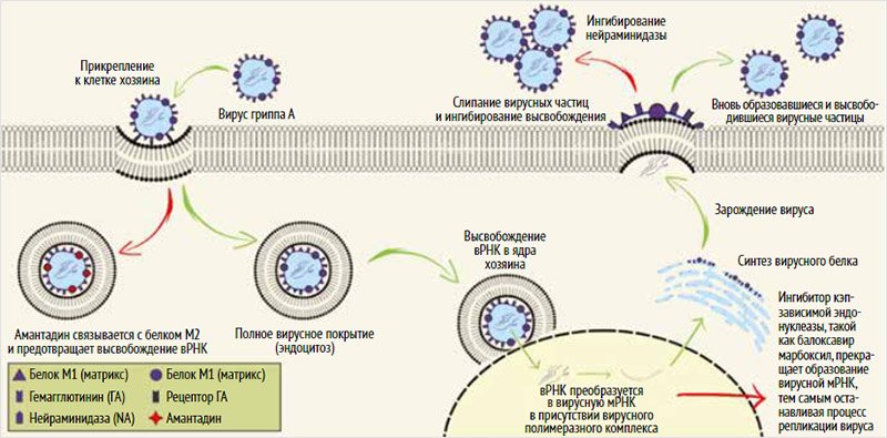 Рисунок 1. Механизмы ингибирования репликации вируса гриппа [1]