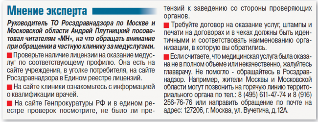 Исходя из документов, предоставленных частной клиникой по требованию Росздравнадзора, пациент принял за операцию стандартные манипуляции при осмотре. Такой пассаж можно расшифровать так: пациенту показалось, что его оперировали. При этом у самого пациента есть договор на оказание услуг в стационарных условиях (именно такие договоры заключаются при проведении операций) и выписной эпикриз, который также подтверждает проведение операции (в редакции имеются копии документов).