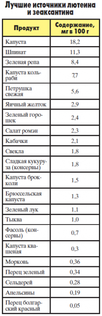 Другие важнейшие каротиноиды - лютеин и зеаксантин. Они крайне важны для зрения и предупреждения возрастной макулярной дегенерации (ВМД). Эта болезнь является главной причиной слепоты в старости. В исследованиях доказано, что желто-зеленые овощи и фрукты, содержащие лютеин и зеаксантин, могут предотвратить развитие ВМД и затормозить ее прогресс, если болезнь уже началась.