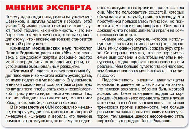 «Доверчивость людей, юридическая безграмотность, вера в чудеса - это все становится почвой для подобного рода преступлений. Не так давно в Москве арестованы лжеэкстрасенсы, которые лечили больных по телефону! Это были обыкновенные мигранты. Люди перечисляли им огромные деньги - в общей сложности 800 миллионов рублей. О чем думали пострадавшие, когда отдавали деньги телефонным целителям?» - удивляется юрист.