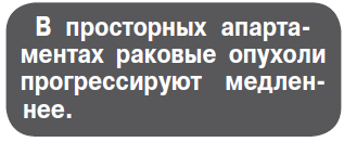 У мышей, которым пришлось жить в тесноте, злокачественные образования начали развиваться быстрыми темпами. Чего не скажешь об их более удачливых собратьях, которых поселили в «просторные апартаменты», у них раковые опухоли прогрессировали очень медленно. По окончании эксперимента размеры опухолей у мышей первой и второй групп отличались в несколько раз.