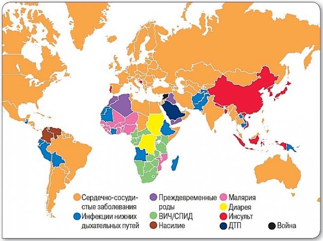 Они поражают все страны и народы в Северной Америке, Бразилии, большинстве стран Южной Америки. То же самое происходит и в Европе, за исключением, пожалуй, Португалии и Македонии, где первое место занимают инсульты, как в Китае и ряде стран Азиатско-Тихоокеанского региона.