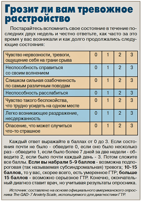 Есть три основные группы лекарств, которые используют при ГТР: антидепрессанты (прозак, паксил, золофт и многие другие), бензодиазепины (к ним относятся тазепам, диазепам, оксазепам и еще масса лекарств, так хорошо известных пациентам) и специфический противотревожный препарат афобазол. Но проблема остается. Пока во многом ни сами пациенты, ни врачи еще не нацелены на выявление тревожных расстройств и не понимают их серьезного значения.