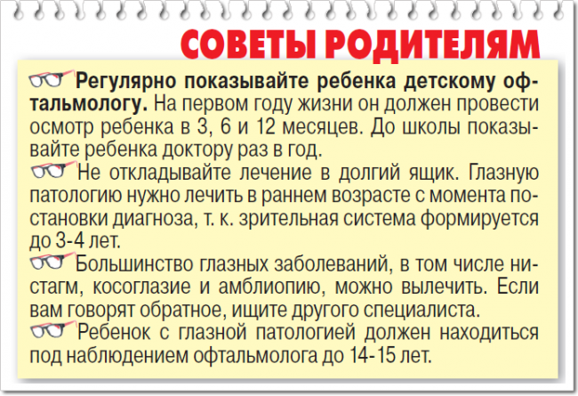 И это не единственная проблема со зрением, которая способна серьезно осложнить жизнь как самому ребенку, так и его родителям на долгие годы. Но эти проблемы решаемы - просто надо вовремя показаться специалисту и соблюдать четкий алгоритм лечения.