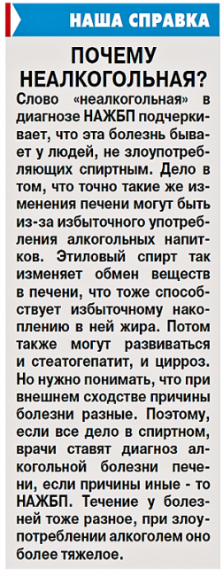 Это устаревшее название заболевания пациенты часто используют в обиходе, но правильнее его называть неалкогольной жировой болезнью печени (НАЖБП). Она считается одним из самых частых хронических заболеваний печени в мире, которое «обогнало» во многих странах и алкогольную болезнь печени, и хронические вирусные гепатиты.