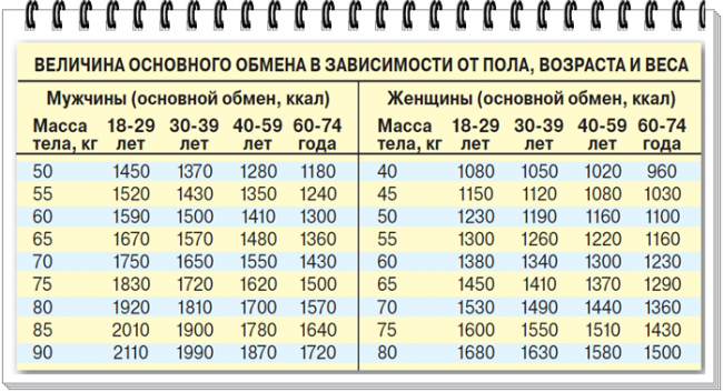 1. В зависимости от своего пола, веса и возраста определите по таблице ваш так называемый основной обмен.