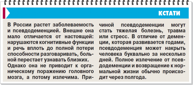 Российское общество принимать проблему пока не готово. В массе своей наши соотечественники не считают деменцию болезнью: мол, это естественный процесс старения, который не требует никакого лечения.