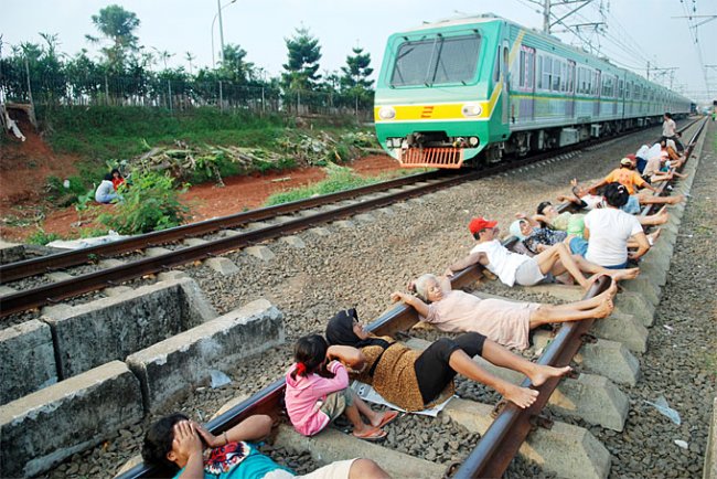 Процесс исцеления рельсами, а точнее - слабым электромагнитным полем, которое они излучают, изобрел один индонезийский таксист. Частично парализованный, он лег на рельсы, чтобы покончить с собой. Но удар тока поставил больного на ноги. Теперь его примеру следуют сотни страждущих, которые штабелями укладываются на рельсы недалеко от вокзала в Джакарте.