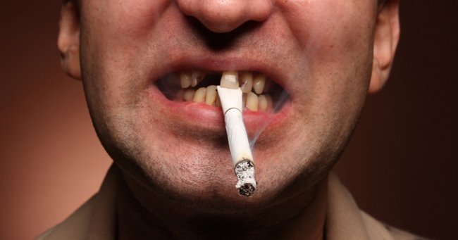 Но курение вредит здоровью зубов не только из-за содержания никотина. Вдыхаемый дым имеет высокую температуру, вплоть до 80 градусов, что приводит к постоянному расширению сосудов в полости рта. Не говоря уже о раздражении чувствительной слизистой оболочки, которая вынуждена регулярно подвергаться воздействию горячего воздуха. Перепады температур приводят к тому, что зубная эмаль разрушается, на ее поверхности появляется эрозия, и в итоге зубы курильщика больше склонны к развитию кариеса.