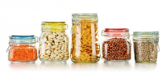 - В банке или контейнере. Желательно, чтобы емкости для хранения были прозрачными: так будет легче узнать, что именно в них хранится, и позволит сразу заметить появление в них жучков и других насекомых. Кстати, выбирая емкости для хранения крупы (да и всего остального тоже), отдайте предпочтение прямоугольным, они занимают гораздо меньше места, чем круглые. И еще совет: вырежьте из пачки и положите в емкость для хранения фрагмент, на котором указаны дата производства продукта и срок хранения либо дата его окончания. Хранить лучше на нижних полках, способных выдержать большой вес.
