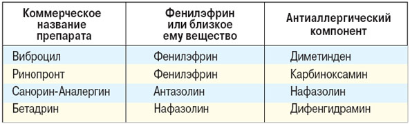 2. Лекарства-гибриды (содержат фенилэфрин или близкое ему вещество + антиаллергическое средство)
