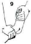 Действие 24. Суставы пальцев. Придерживая за лодыжку ногу массируемого, массажист другой рукой производит сгибание и разгибание пальцев на этой ноге (рис. 9).