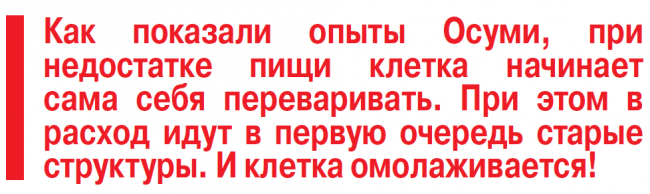 В опубликованной 19 февраля статье мы сосредоточили внимание на открытии японским ученым Ёсинори Осуми генного сегмента 18ATG, отвечающего в организме человека за самоочищение клетки, так называемую аутофагию, то есть процесс, который происходит во время голодания.