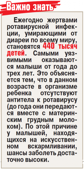 - Ротавирус - не единственная кишечная инфекция, угрожающая здоровью детей, - предупреждает Людмила Мазанкова. - Кроме нее, у детей школьного возраста часто встречаются сальмонеллез, дизентерия, передающиеся через немытые руки, инфицированные продукты и воду.