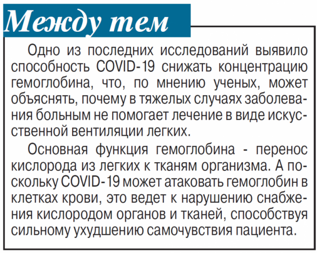 «Пораженные коронавирусом не похожи на пациентов, умирающих от пневмонии, они больше походят на людей, оказавшихся на вершине Эвереста без акклиматизации. При пневмонии вентилятор работает вместо ослабевших уставших мыщц пациента, но у больных COVID-19 мышцы в порядке. Люди страдают от нехватки кислорода, а не от отказа респираторной системы».