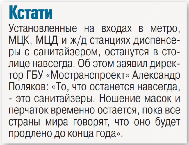 На каждой станции столичного метро стоят диспенсеры с санитайзером.