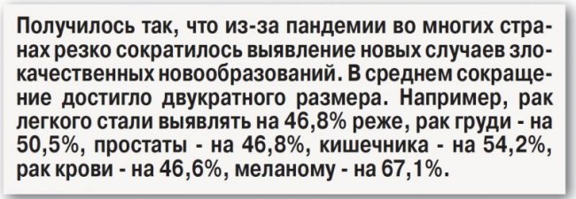 Каждый день онкозаболевания уносят жизни 26 тысяч человек. Сегодня ситуация резко ухудшилась: многие страны были вынуждены сократить объемы онкопомощи больным. Кроме того, больные с диагнозом «рак» оказались в группе повышенного риска как по заражению, так и по тяжелому течению ковида. Сегодня известно, что риск заражения онкопациентов в 3-4 раза выше, чем среди остальных людей. Особенно если речь идет о пациентах с онкогематологическими заболеваниями, а также с метастазированными формами рака, а также о тех, кто проходит лечение. В то же время российские врачи подтверждают, что во время пандемии пациенты стали все чаще приходить к онкологу с запущенными формами рака.