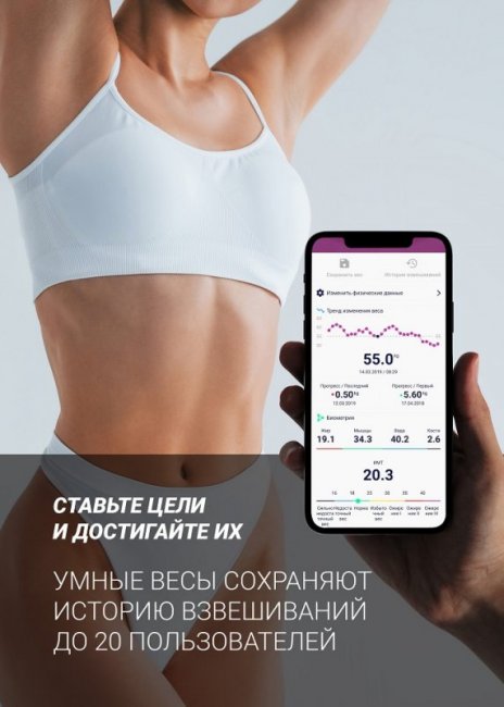 Впрочем, вы можете поручить вести статистику своему персональному помощнику – умным весам Polaris PWS 1886 IQ Home. Они зафиксируют все ваши достижения и динамику изменений. С ними вы сможете контролировать эффективность тренировок и диет. Все данные всегда будут под рукой в вашем смартфоне.