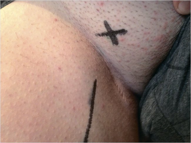 Рисунок 1. Предоперационное картирование сафено-феморального соустья