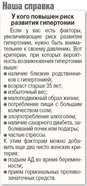Но нередко болезнь дает о себе знать раньше: самым типичным ее симптомом бывает головная боль, особенно в затылочной области. А при резком повышении давления бывают тошнота, рвота, мушки в глазах. Если у вас бывают такие симптомы, обязательно измерьте свое давление. И проверьте, не находитесь ли вы в зоне риска по гипертонии (см. «Наша справка»).